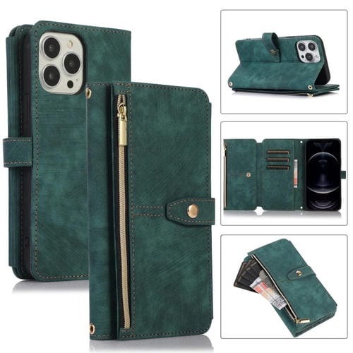 Funda para iPhone 12 Pro Max Dream 9-Card Wallet Zipper Bag de Cuero para Teléfono (Verde)