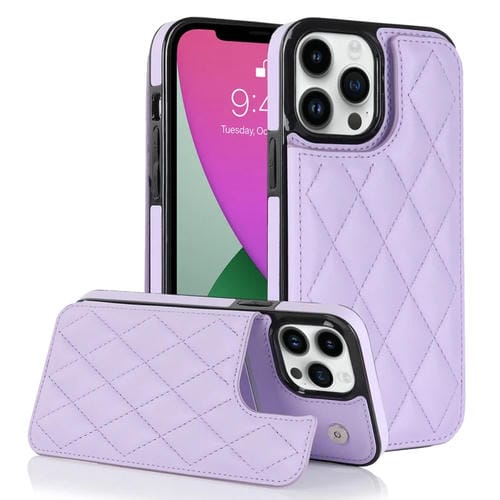 Estuche para Teléfono iPhone 12 Pro Max Cuero PU Rombal Doble Hebilla (Púrpura)