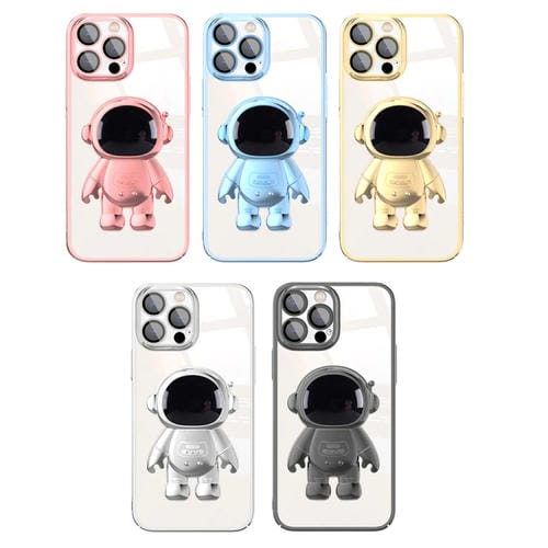 Funda para iPhone 12 Pro Max Galvanoplastia PC Astronaut Holder con Lente Film (Azul)