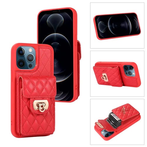 Funda de Cuero para Teléfono iPhone 12 Pro Max Ranura para Tarjeta (Rojo)