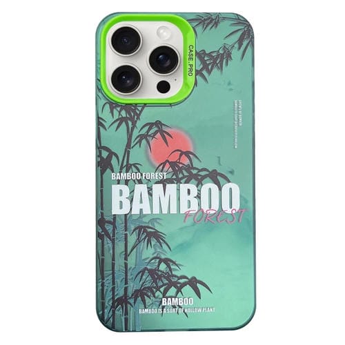 Funda para Teléfono iPhone 12 Pro TPU + PC Pintura al Óleo Paisaje Colorido Atardecer (Bambú Verde)