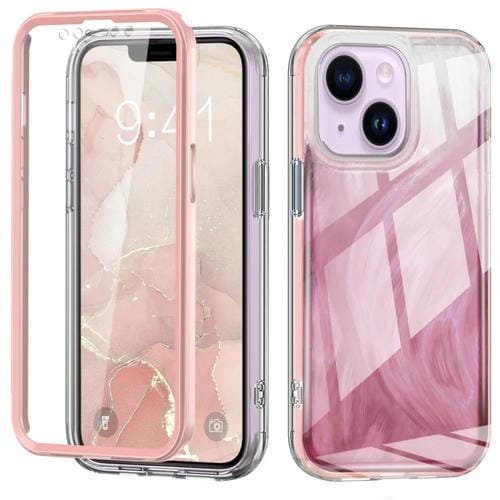 Funda para iPhone 13 2 en 1 IMD Gradient Feather PC y TPU (Rosa Claro)