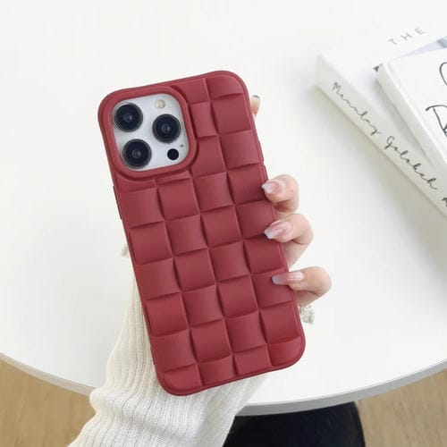 Funda para Teléfono iPhone 13 3D Cube Weave Texture Skin Feel (Rojo Vino)