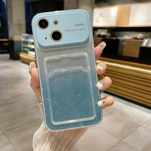 Estuche para Teléfono iPhone 13 con Brillo Degradado y Ventana Grande con Ranura para Tarjeta (Azul)
