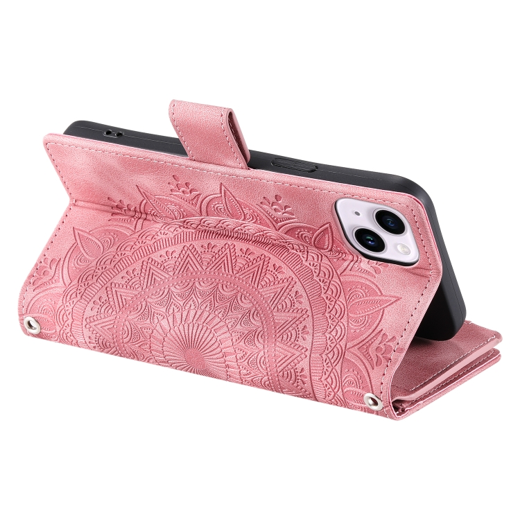 Funda para Teléfono iPhone 13 Cuero Cremallera Totem Múltiples Tarjetas (Rosa)