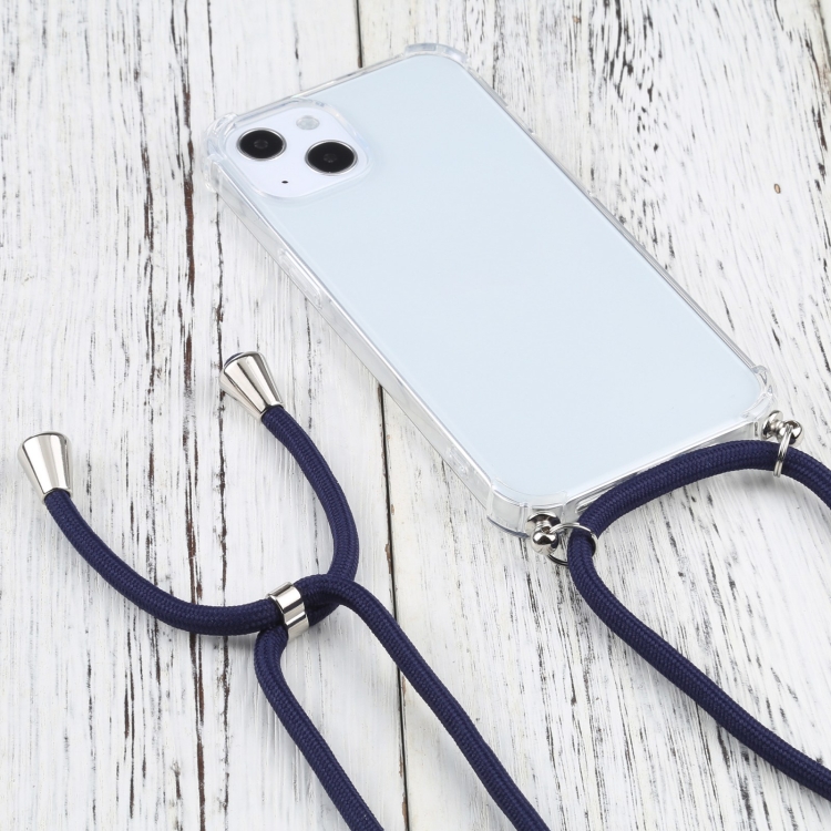 Funda Protectora TPU para iPhone 13 a Prueba de Golpes Cuatro Esquinas con Cordón (Azul Oscuro)