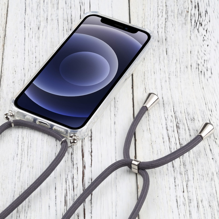 Funda Protectora TPU para iPhone 13 a Prueba de Golpes Cuatro Esquinas con Cordón (Gris)