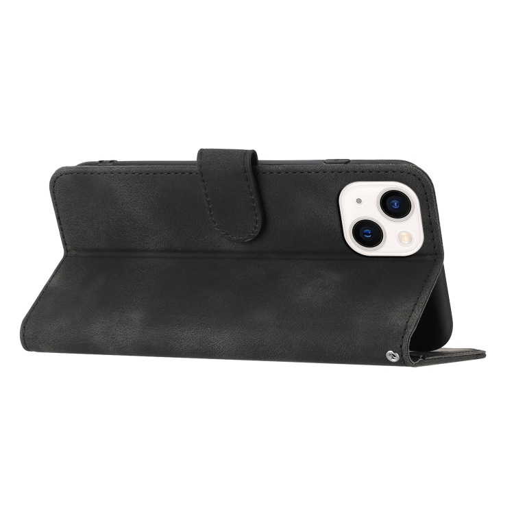 Funda para iPhone 13 Skin Feel Leather con patrón de Corazón (Negro)