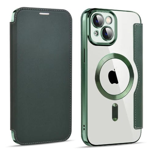 Funda para Teléfono iPhone 13 Magsafe Magnetic Rfid Cuero Antirrobo (Verde Oscuro)