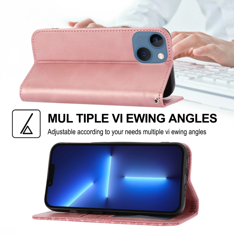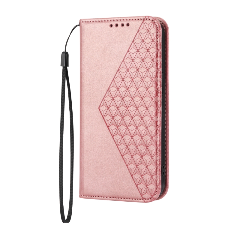 Funda para iPhone 13 Mini Cubic Grid Calf Texture Cierre Magnético de Cuero (Oro Rosa)