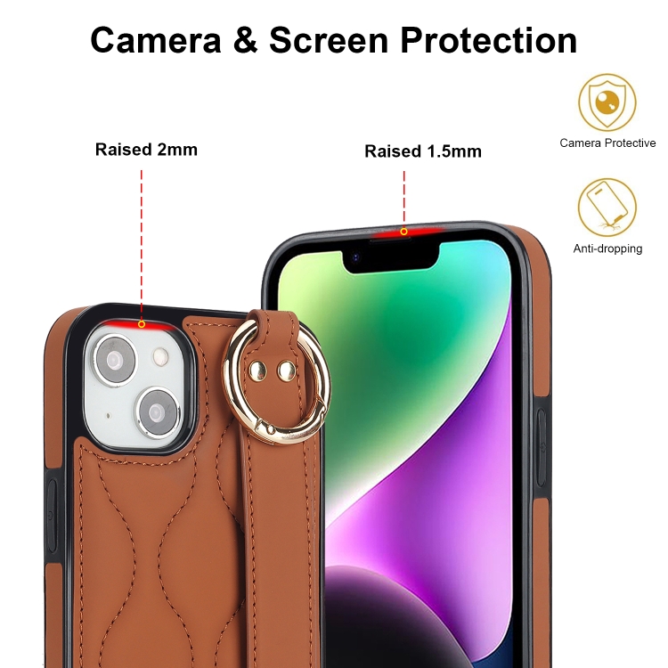 Funda para iPhone 13 Mini Antideslizante de PU con Anillo y Muñequera (Marrón)