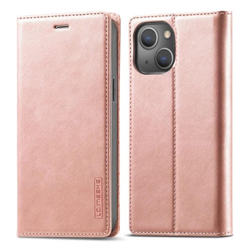 Estuche para iPhone 13 Mini Lc.Imeeke Cuero con Tapa Horizontal Magnético + TPU Mate con Soporte y Ranuras para Tarjetas (Oro Rosa)