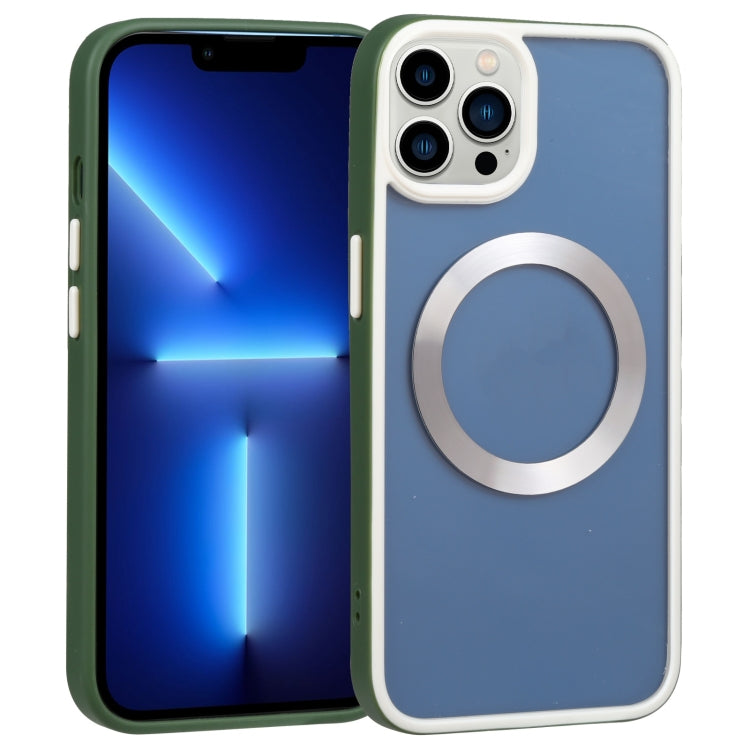 Funda para Teléfono iPhone 13 Pro Escudo Dos Colores Magsafe TPU + PC (Verde Oscuro)