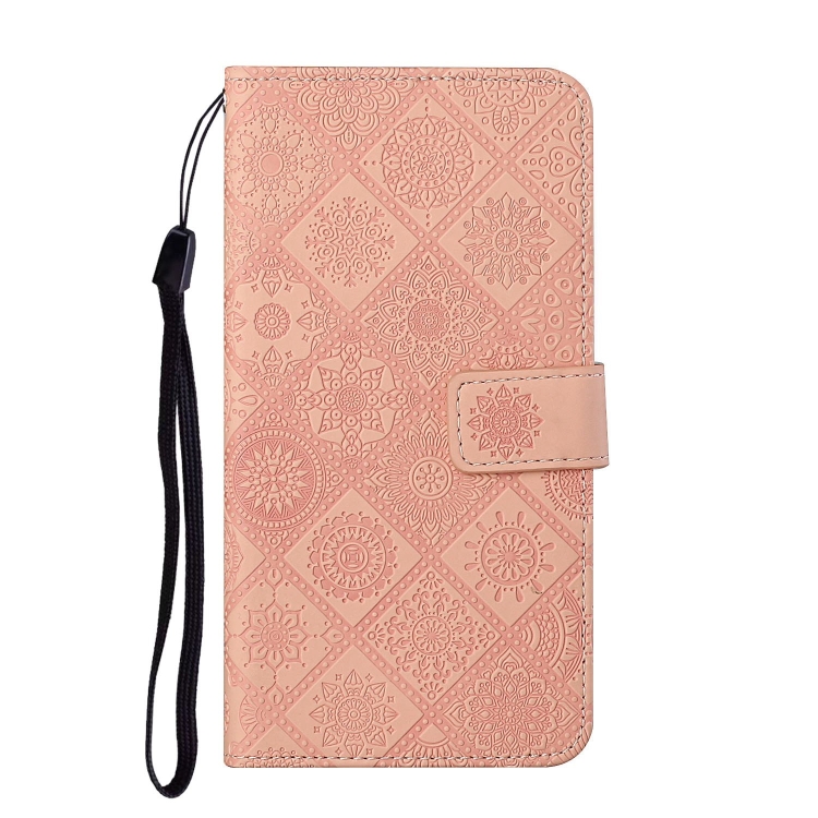 Estuche para Teléfono iPhone 13 Pro Cuero Patrón en Relieve Estilo Étnico (Rosa)