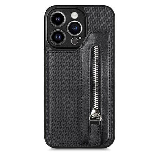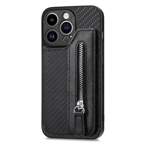 Funda para iPhone 13 Pro Max Carbon Fiber Horizontal Flip Zipper Wallet (Negro)