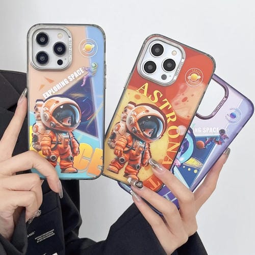 Estuche para Teléfono iPhone 13 Pro Max Astronauta Colorido Grabado (Naranja Pequeño)