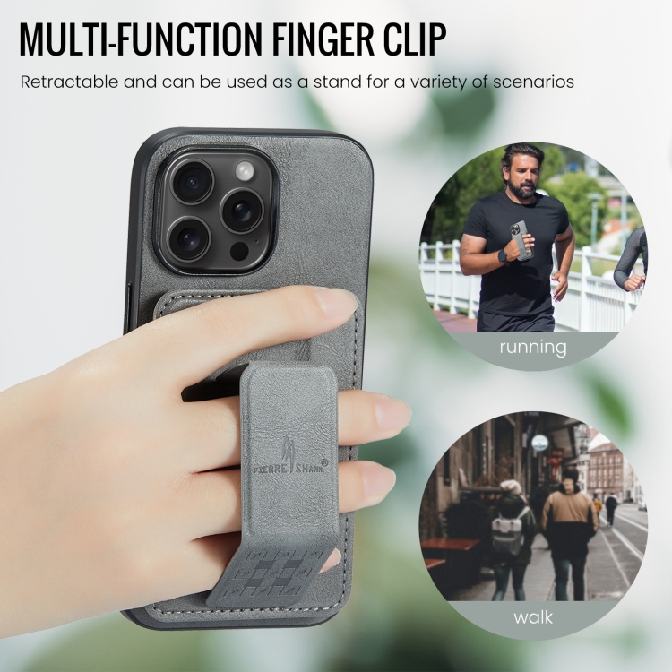 Funda para Teléfono Fierre Shann iPhone 13 Pro Max Oil Wax con Tarjetero Cuero de Vaca (Gris)
