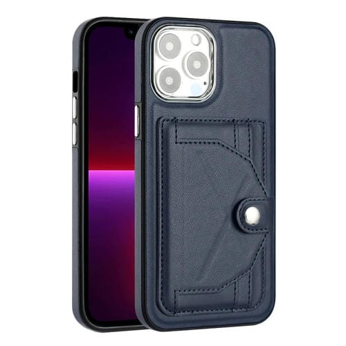 Funda de teléfono iPhone 13 Pro Max Cuero a prueba de golpes con tarjetero (Azul)