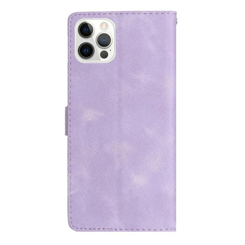 Funda de Teléfono iPhone 13 Pro Max Cuero Estampado Flores En Relieve (Púrpura)