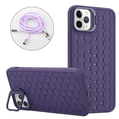 Funda para Teléfono iPhone 13 Pro Max Honeycomb Radiating Lens Holder Magsafe con Cordón (Púrpura)