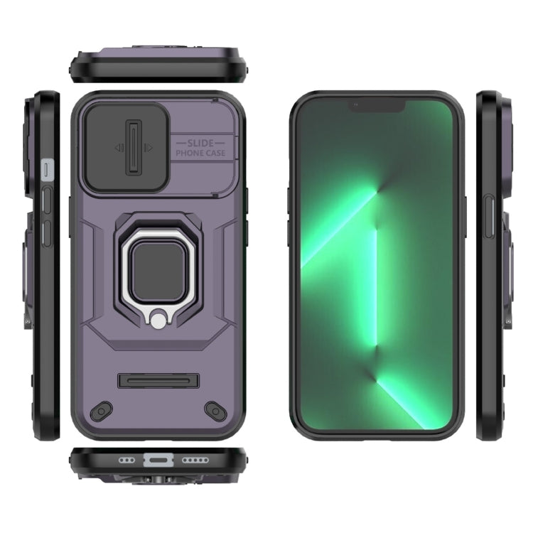 Estuche para Teléfono iPhone 13 Pro Sliding Camshield TPU + PC a Prueba de Golpes con Soporte (Púrpura)