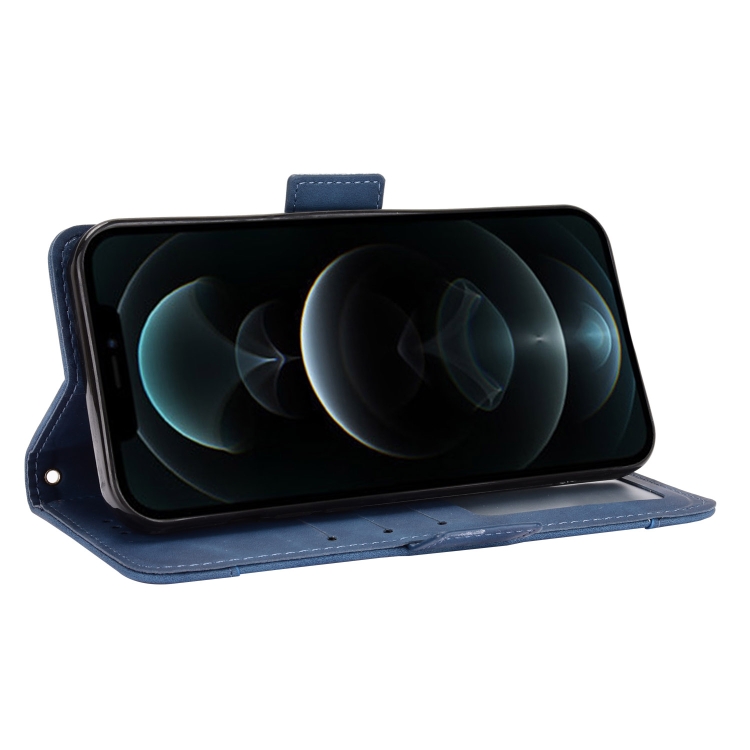 Funda para iPhone 13 Skin Feel Calf Pattern de Cuero con Tapa Horizontal Soporte y Ranuras para Tarjetas (Azul)
