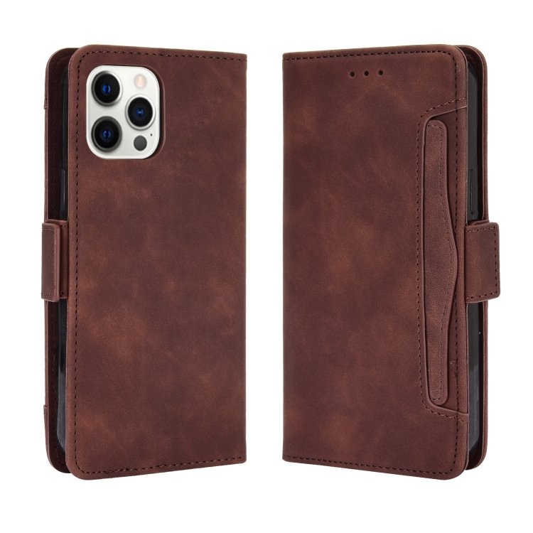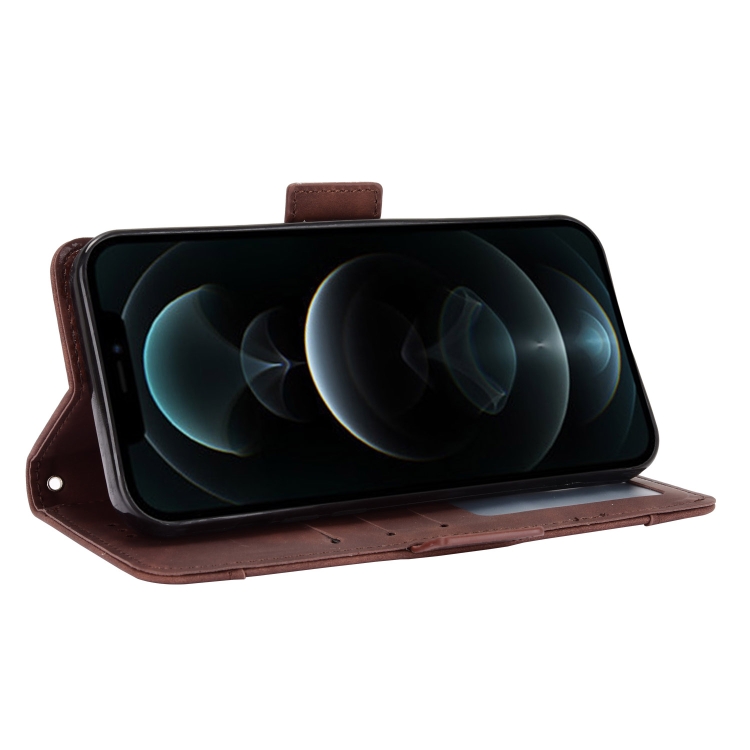 Funda de Cuero Para iPhone 13 Skin Feel Calf Pattern con Tapa Horizontal Soporte Ranuras Tarjetas Marco Fotos (Marrón)
