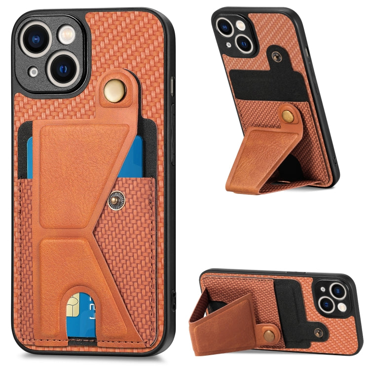 Funda para Teléfono iPhone 14 Cartera Fibra de Carbono Flip Card Soporte en Forma de K (Marrón)