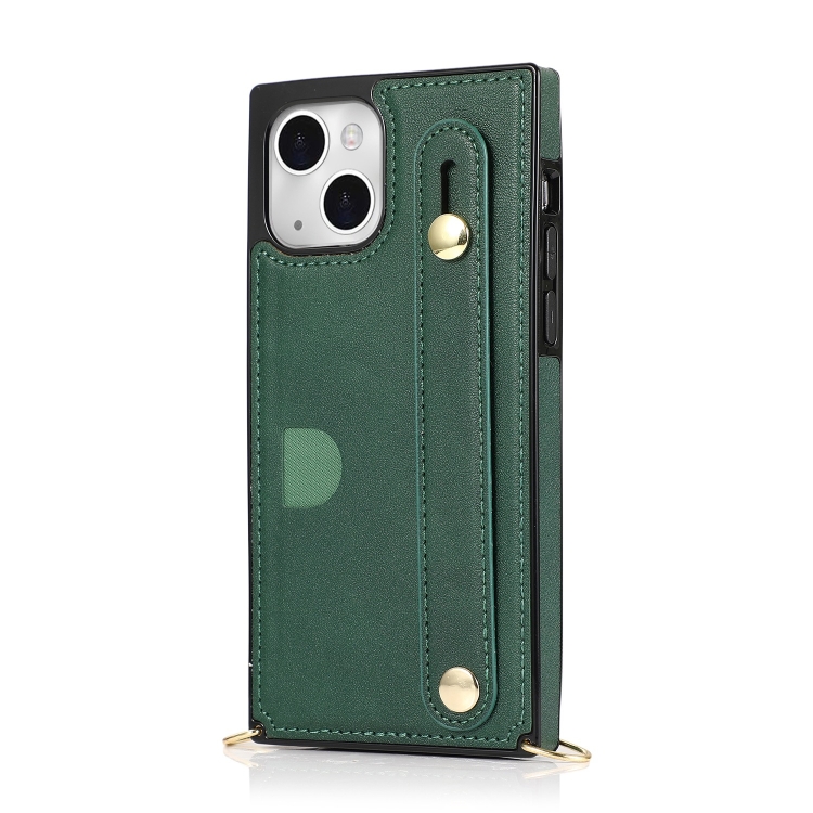 Funda para Teléfono iPhone 14 Crossbody Correa para la Muñeca con Tarjetero (Verde)
