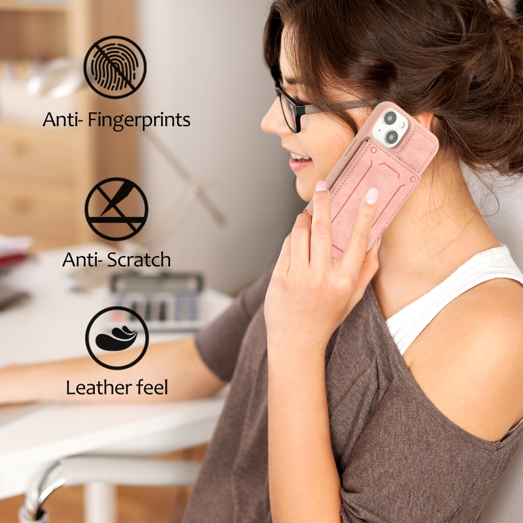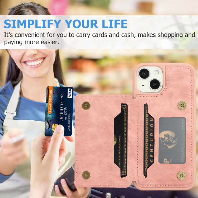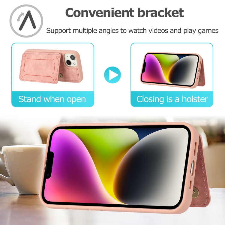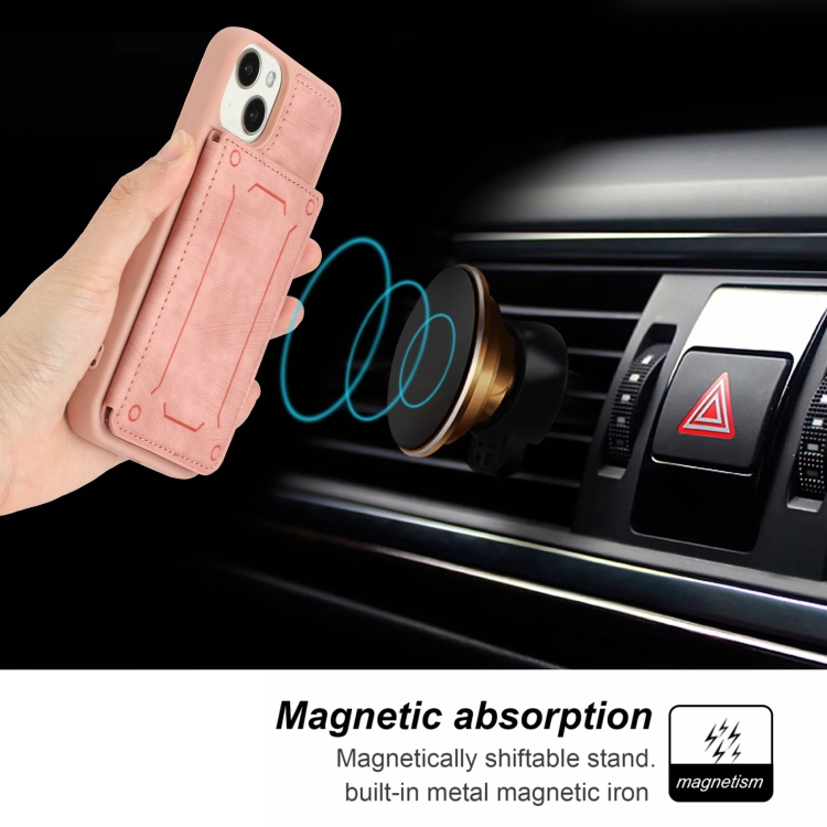 Funda para iPhone 14 Dream Magnetic Back Cover Card Wallet Phone Case (Rosa)