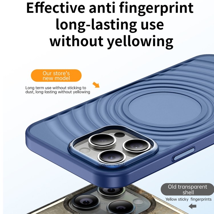 Estuche para teléfono iPhone 14 corrugado con sensación de piel acrílica (Azul)