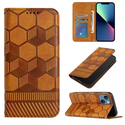 Funda de Teléfono iPhone 14 Tapa Cuero Magnético Textura Fútbol (Caqui)