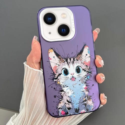 Funda para Teléfono iPhone 14 Imd Animal Graffiti TPU + PC Doble Cara (Gato Aturdido)