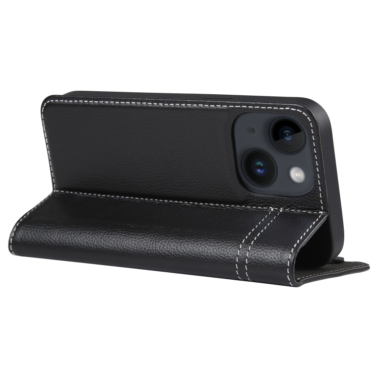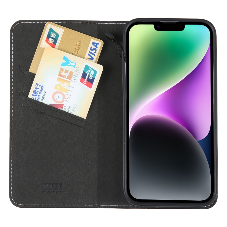 Estuche para Teléfono Gebei iPhone 14 Cuero con Tapa Horizontal de Grano Superior (Negro)