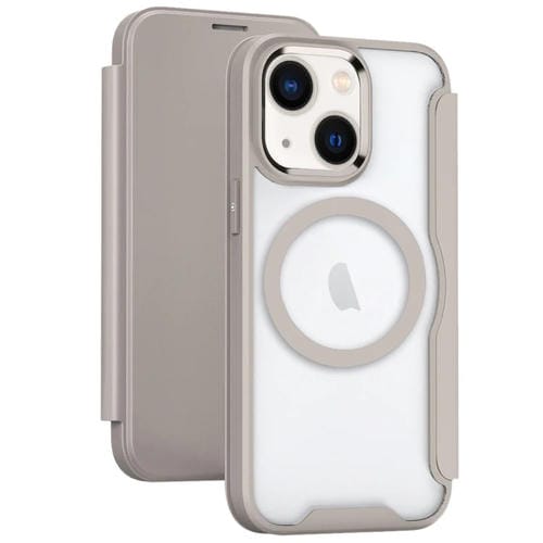 Funda para Teléfono iPhone 14 Magsafe Rfid Bloqueo de Adsorción Cuero con Tapa (Caqui)