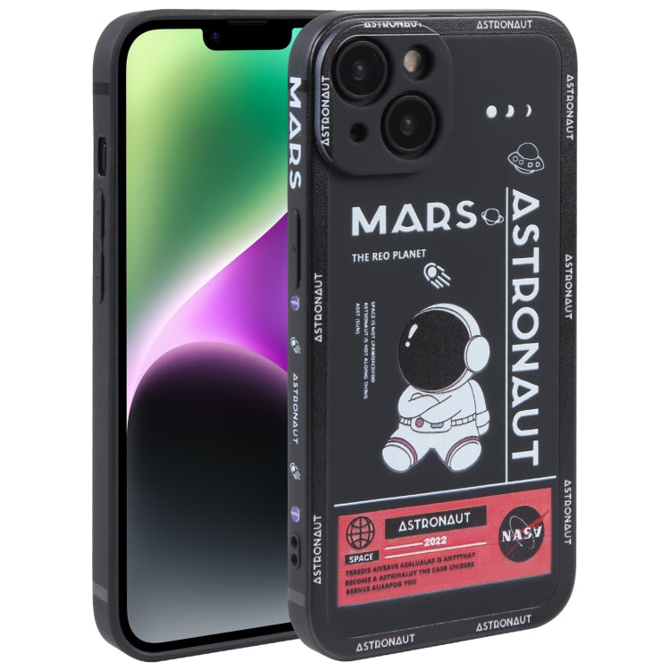 Funda de teléfono iPhone 14 Patrón de Astronauta borde recto silicona (Astronauta de Marte-Negro)