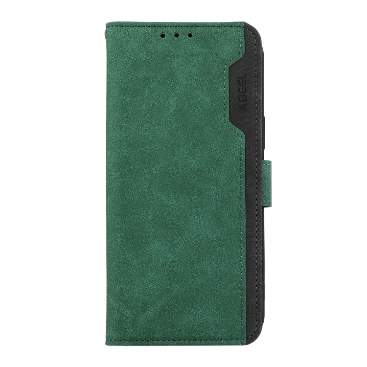 Estuche magnético de cuero Abeel para iPhone 14 Plus con protección RFID (Verde-Negro)