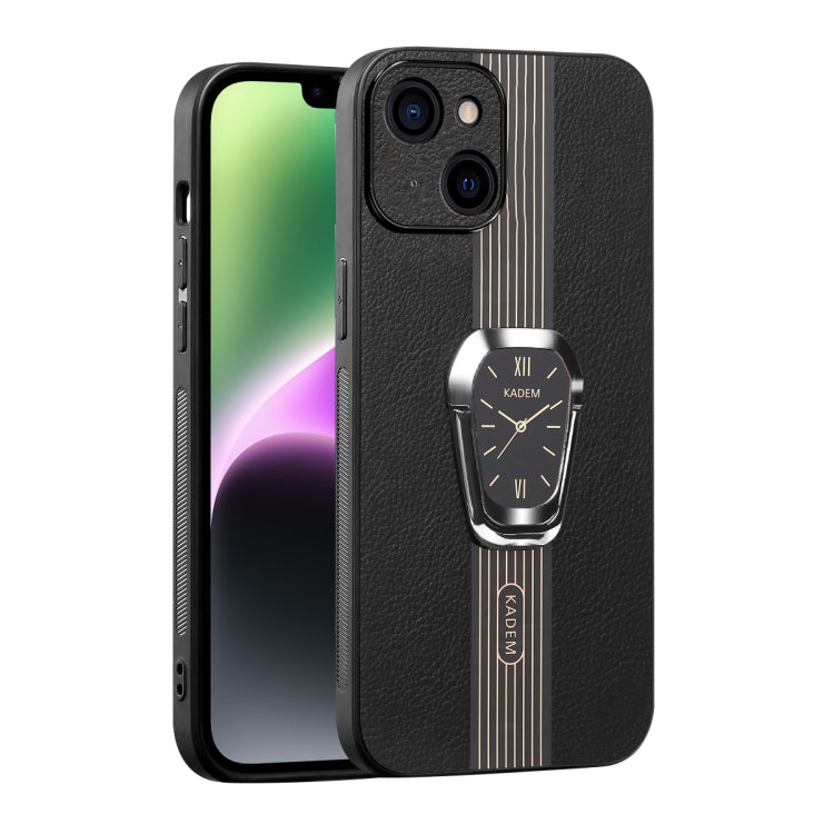 Estuche Magnético para Teléfono iPhone 14 Plus con Parte Trasera de Cuero Litchi y Soporte (Negro)