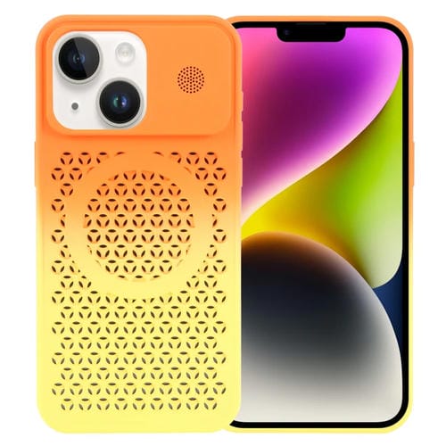Estuche para Teléfono iPhone 14 Plus Magsafe Aromaterapia Enfriamiento Panal (Amarillo Naranja)