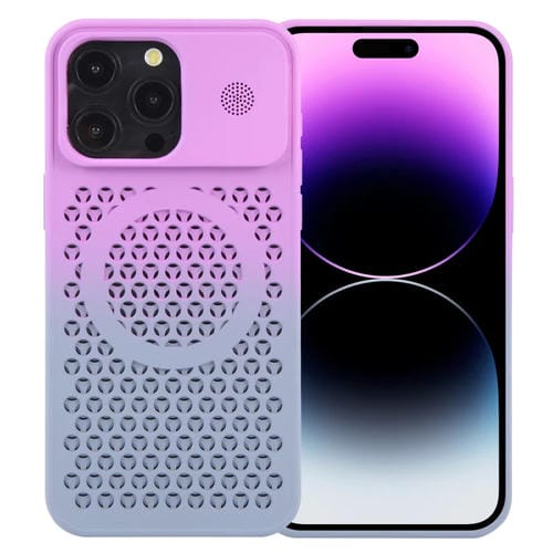 Funda para Teléfono iPhone 14 Pro Honeycomb Cooling Aromaterapia Magnética (Gris Púrpura)