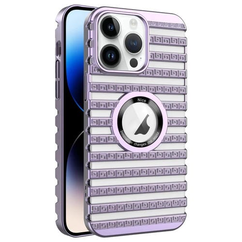 Caja de Teléfono Hueca Galvanizada con Escalera de Enfriamiento para iPhone 14 Pro Max (Púrpura)