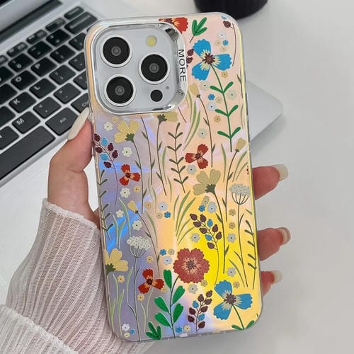 Funda para iPhone 14 Pro Max TPU Galvanoplastia Láser Flor Textura (Flor Ah6)