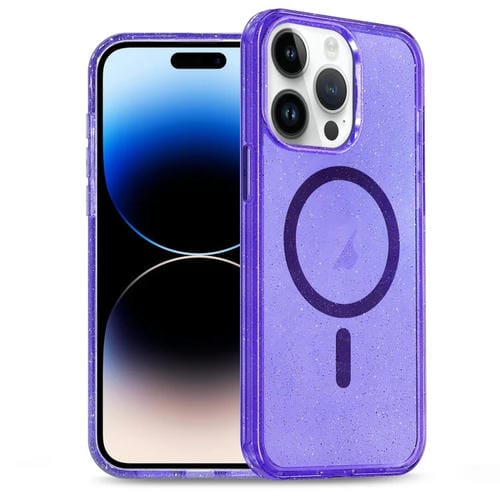 Funda para Teléfono iPhone 14 Pro Max Glitter Powder TPU Hybrid PC Magsafe (Púrpura)