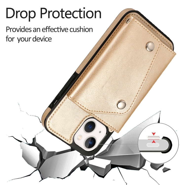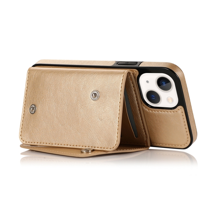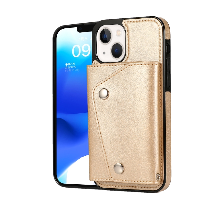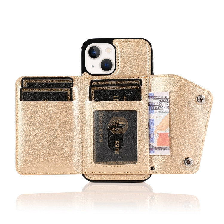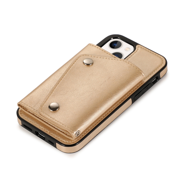 Funda para iPhone 14 PU + TPU con Ranuras para Tarjetas y Cuero (Oro)