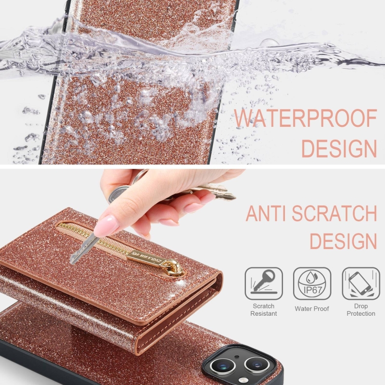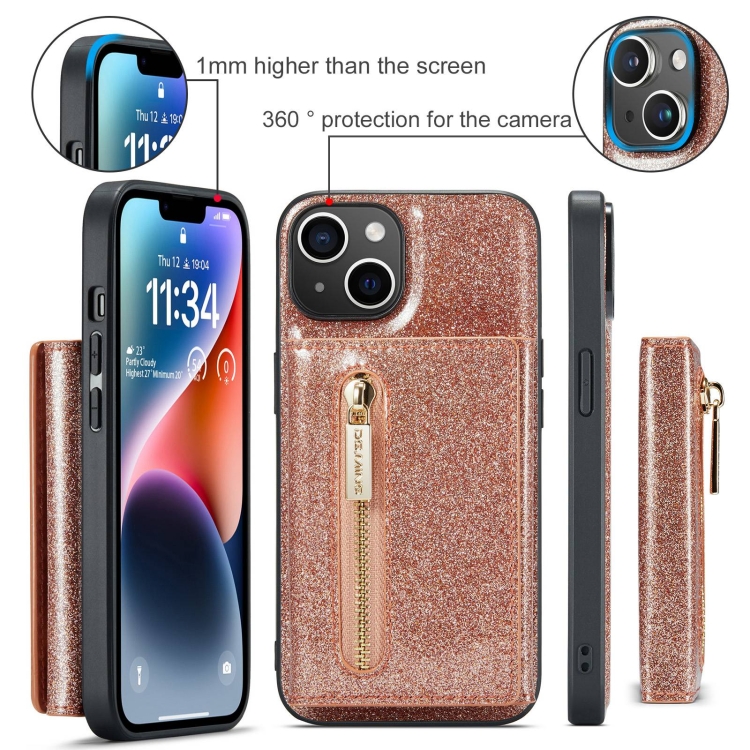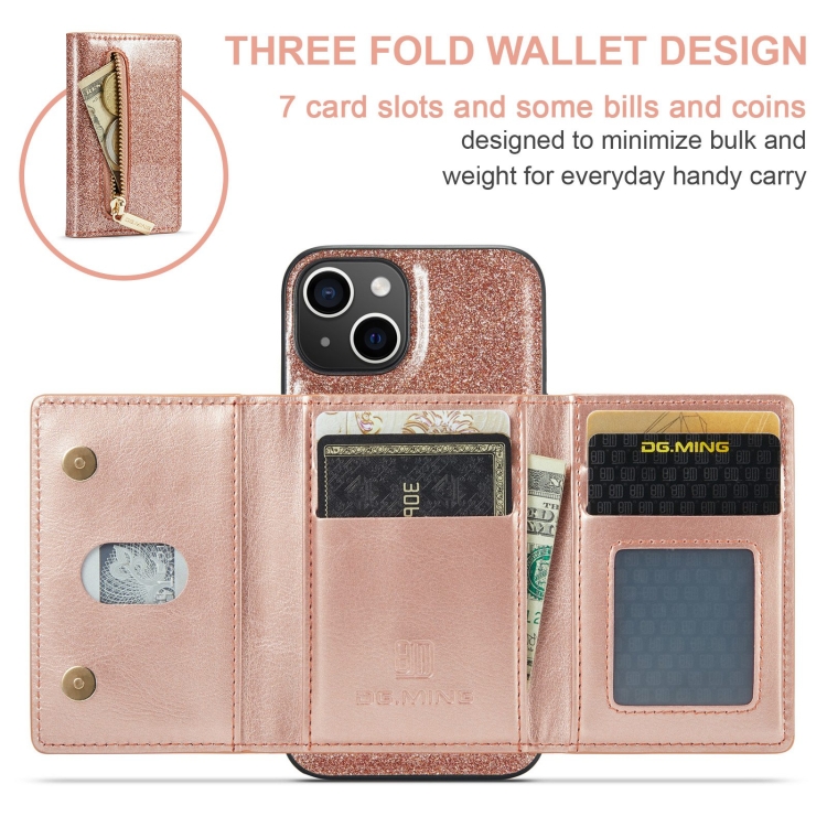 Funda de Cuero Dg.Ming M3 Series para iPhone 15 Glitter Powder Card Bag (Oro Rosa)