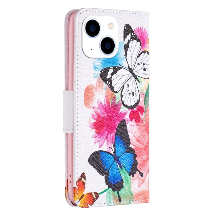 Estuche de Teléfono para iPhone 15 Cuero con Patrón de Dibujo Coloreado (Mariposas)