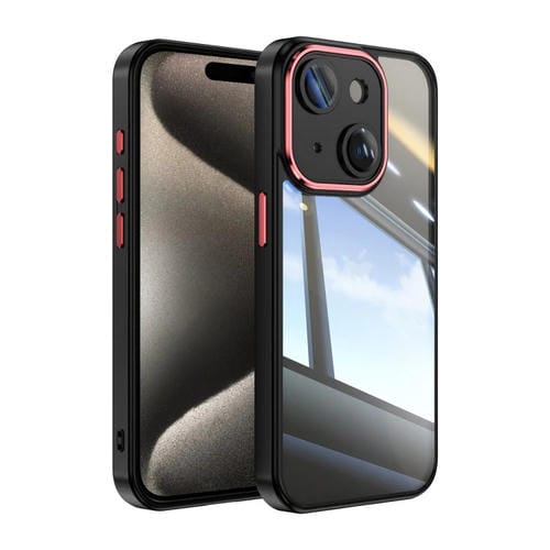 Funda de teléfono para iPhone 15 con Armadura de TPU Híbrida Acrílica a prueba de golpes (Negro Rojo)