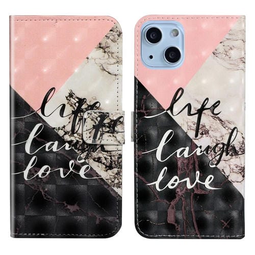 Funda de Teléfono iPhone 15 Cuero Dibujo 3D En Relieve al Óleo (Mármol de Costura)