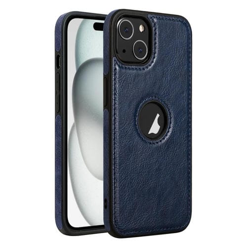 Funda para Teléfono para iPhone 15 con Costuras de Textura de Cuero (Azul)