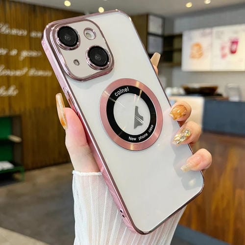 Funda para Teléfono iPhone 15 Magsafe para PC Galvanizada Transparente (Rosa)
